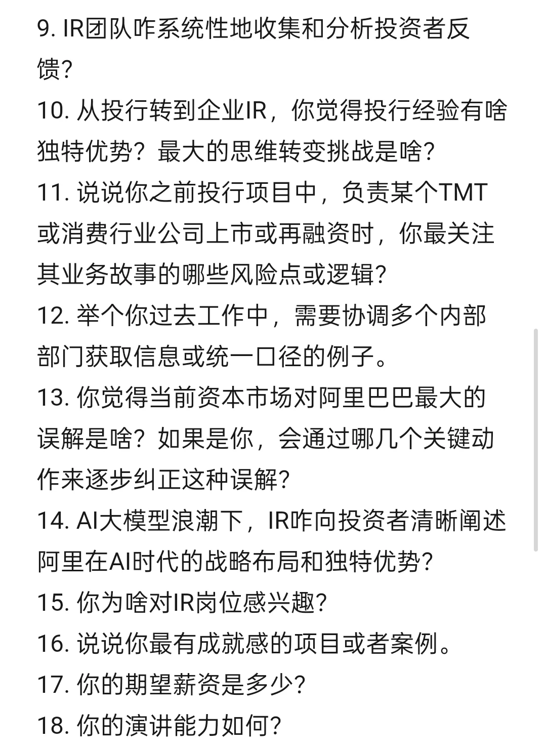 10. 从投行转到企业IR,你觉得投行经验有啥独特优势?最大的思维转变挑战是啥?