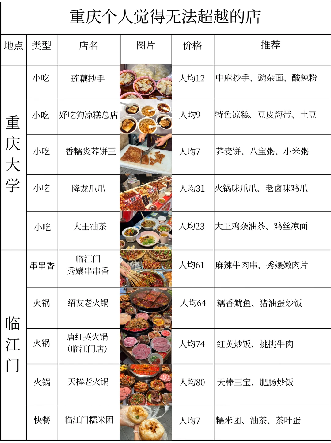 重庆个人觉得无法超越的店(附地址)