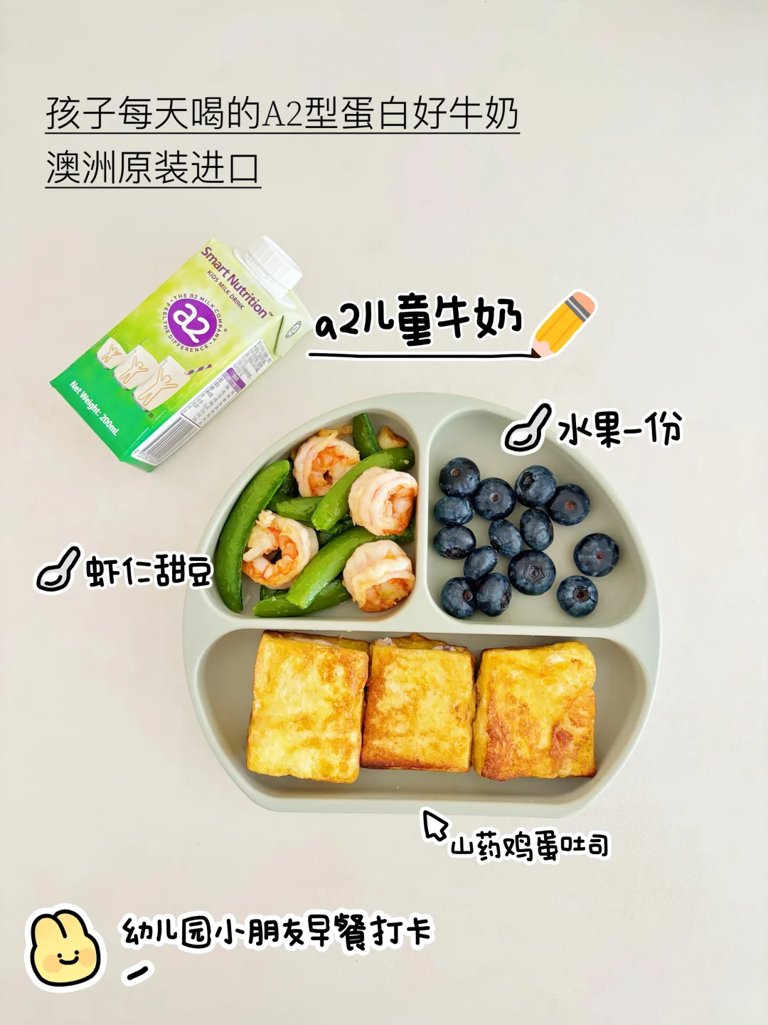 [彩虹R]俗话说:一年之际在于春,一日之计在于晨。一份合格的儿童早餐,能为孩子提供每天30% 的能量,早餐的食材种类尽量要丰富多样,不仅要有主食,还要有肉、蛋、奶、新鲜的蔬果🍓