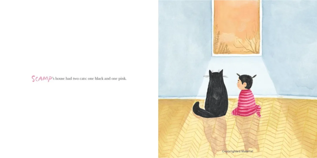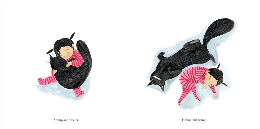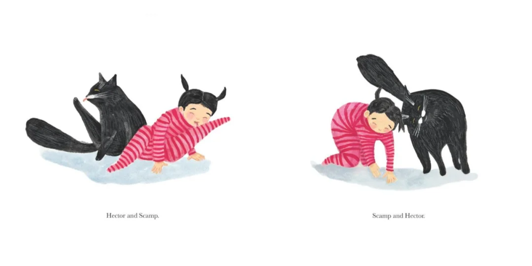 小淘气家有两只特别的‘猫’,一只是黑猫赫克托,另一只是穿着亮粉色条纹睡衣、扎着黑辫子,像小猫崽似的小淘气。”