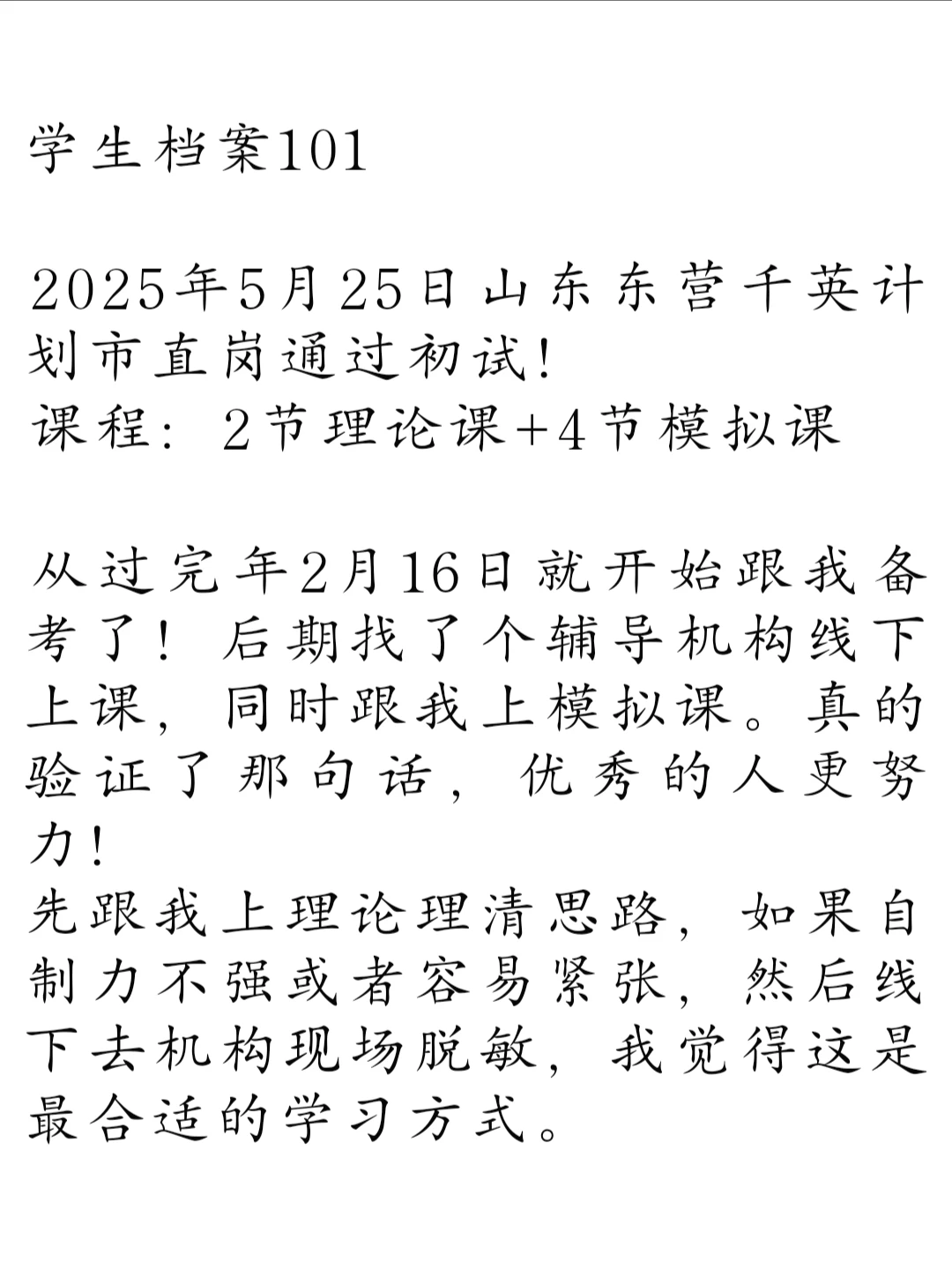 从过完年2月16日就开始跟我备考了!后期找了个辅导机构线下上课,同时跟我上模拟课。真的验证了那句话,优秀的人更努力!
