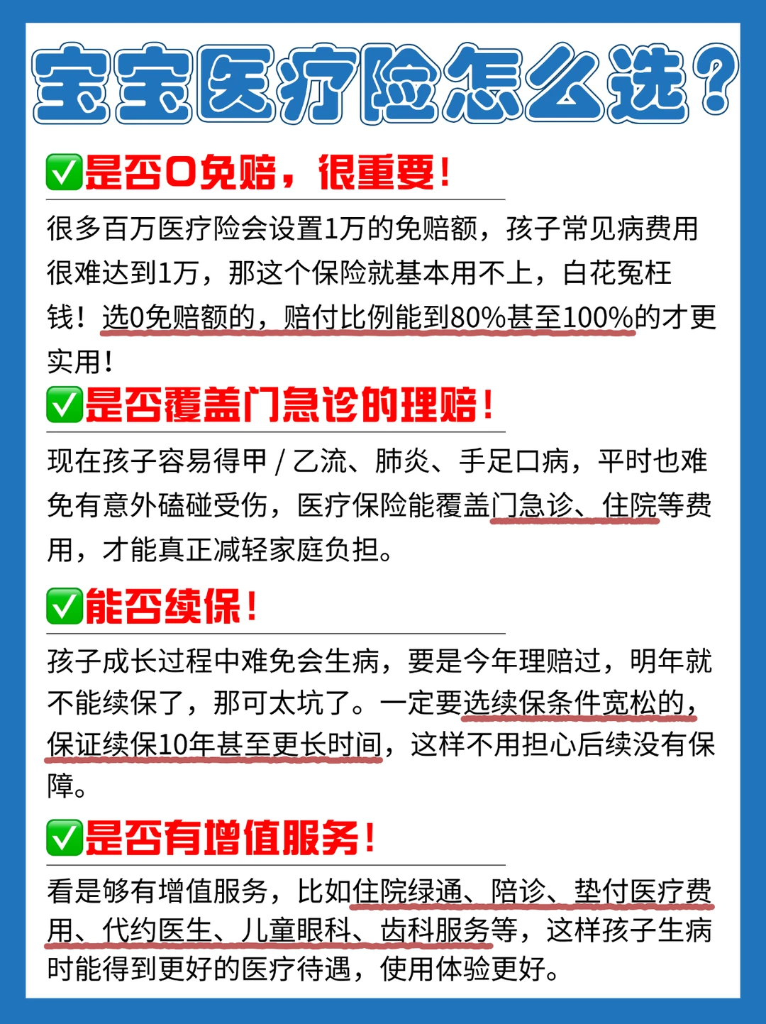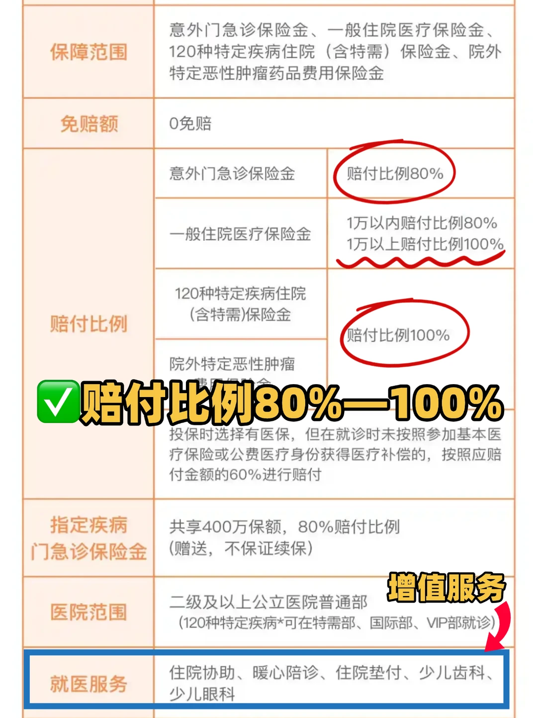 ❥四是看增值服务,比如儿童眼科、齿科、住院绿通、陪诊、垫付费等,生病时能得到更好的医疗待遇,使用体验更好