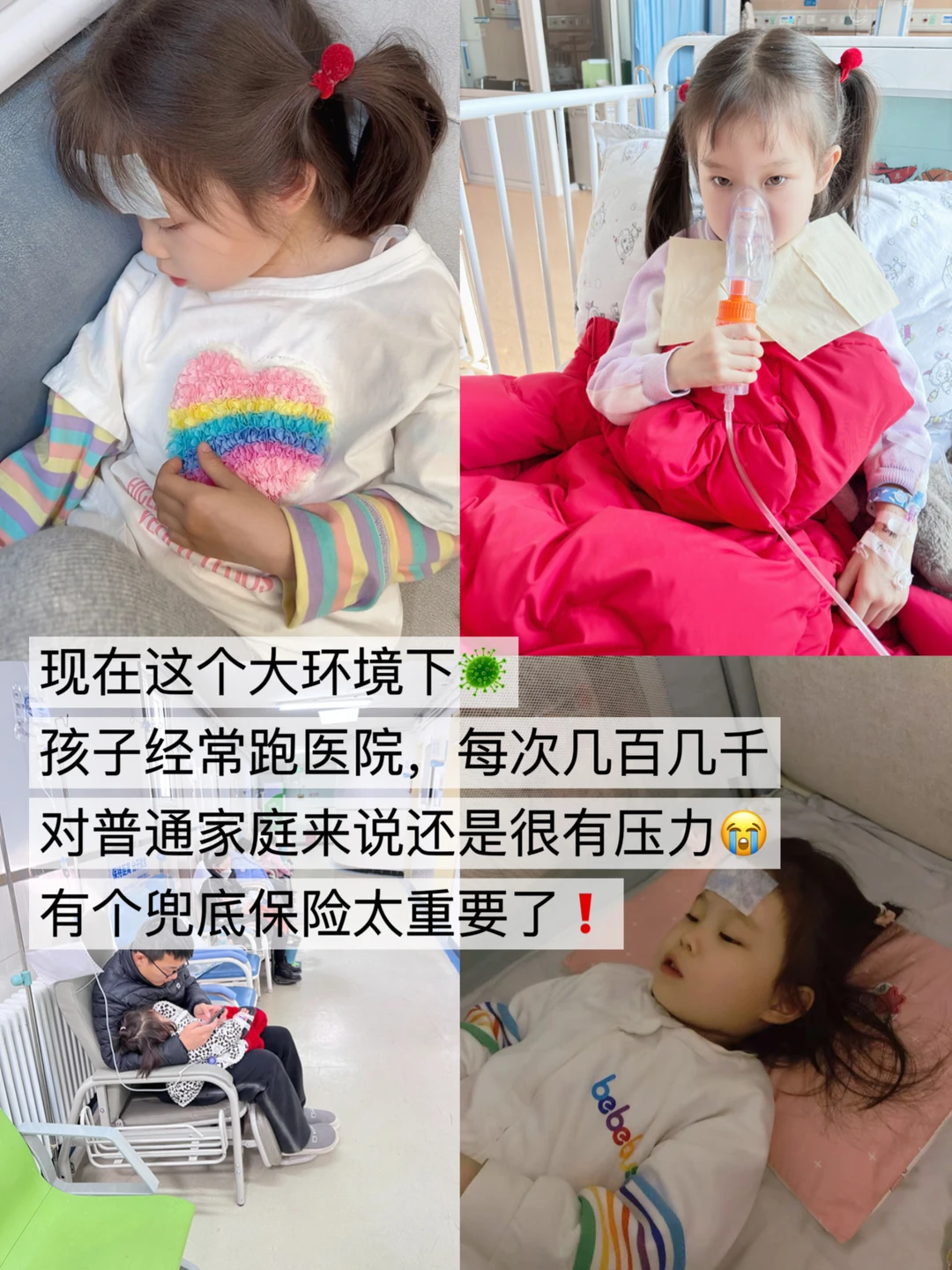 现在大环境太差了,孩子三天两头生病,年前糯米肺炎🏥输液,看着一堆检查单和治疗费用,娃爸说多亏提前买了医疗险,不然对于普通家庭来说,这压力真不小