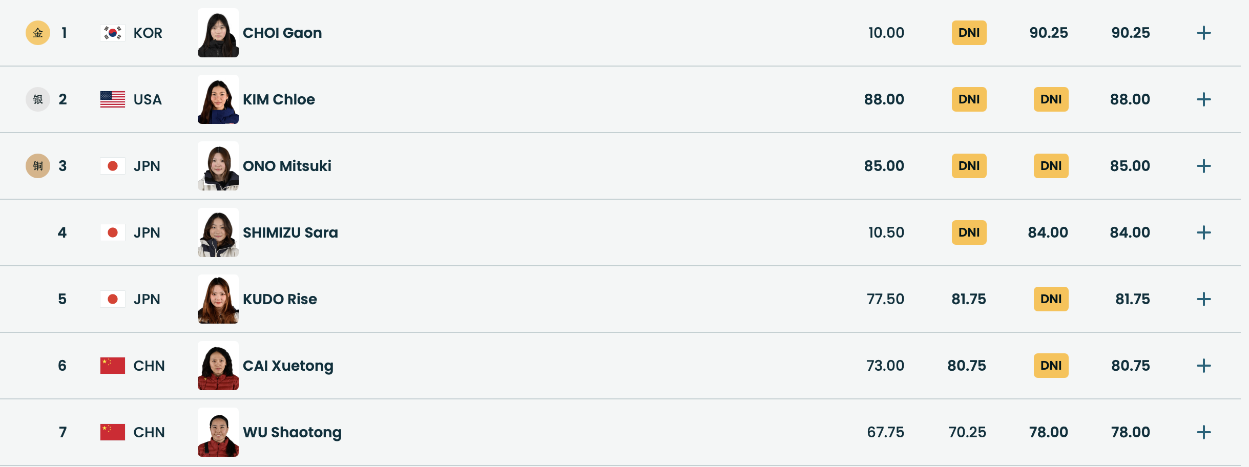 韩国小将崔佳恩前期失误摔倒,第三滑获得90.25的成绩最终夺冠。