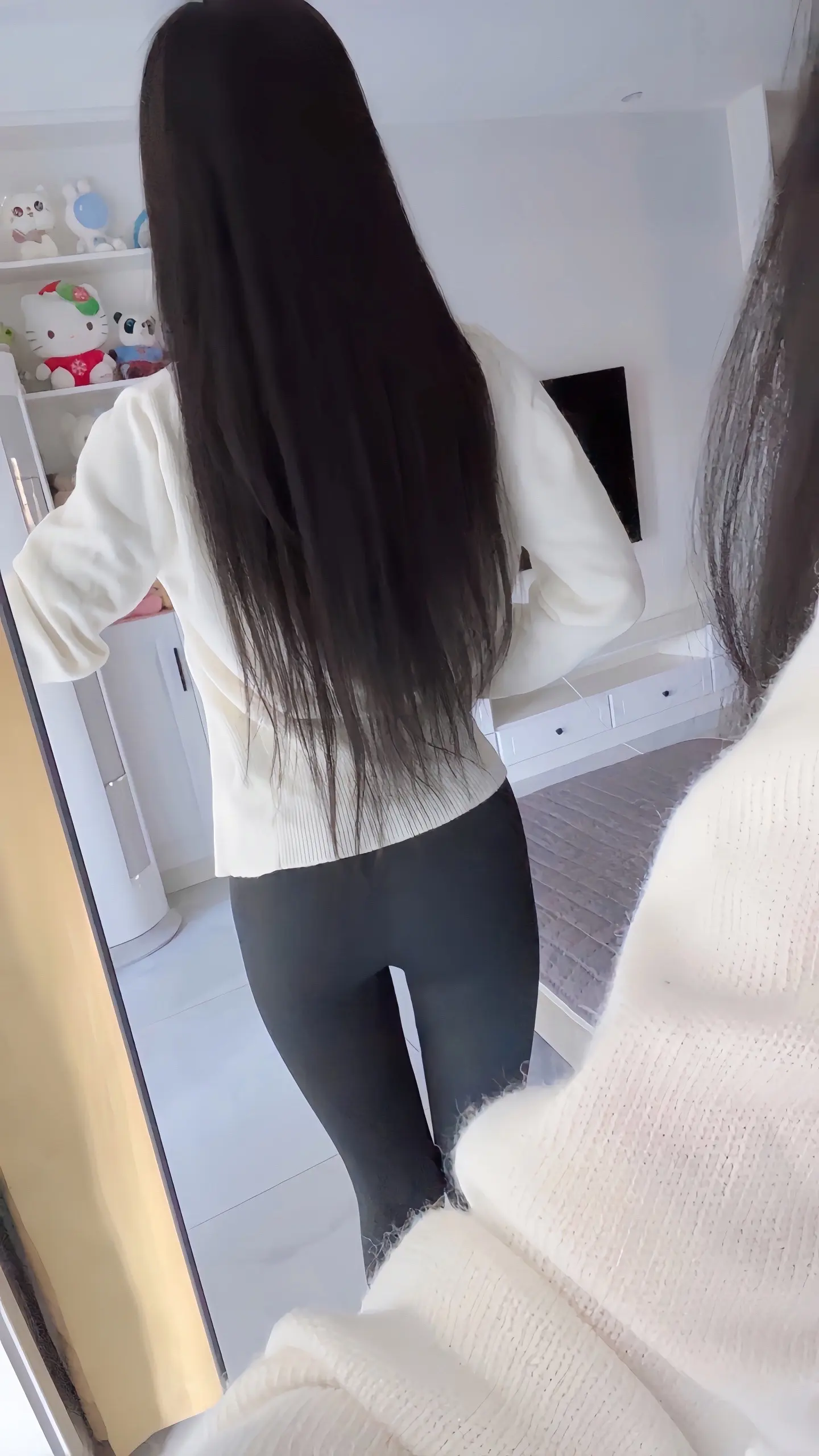 对镜拍完美身材瑜伽裤清纯背影