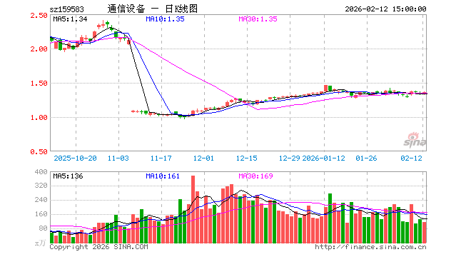 2月12日,通信设备ETF(159583)涨1.95%,成交额1.56亿元。当日份额减少1400.00万份,最新份额为10.53亿份,近20个交易日份额增加2800.00万份。最新资产净值计算值为14.31亿元。