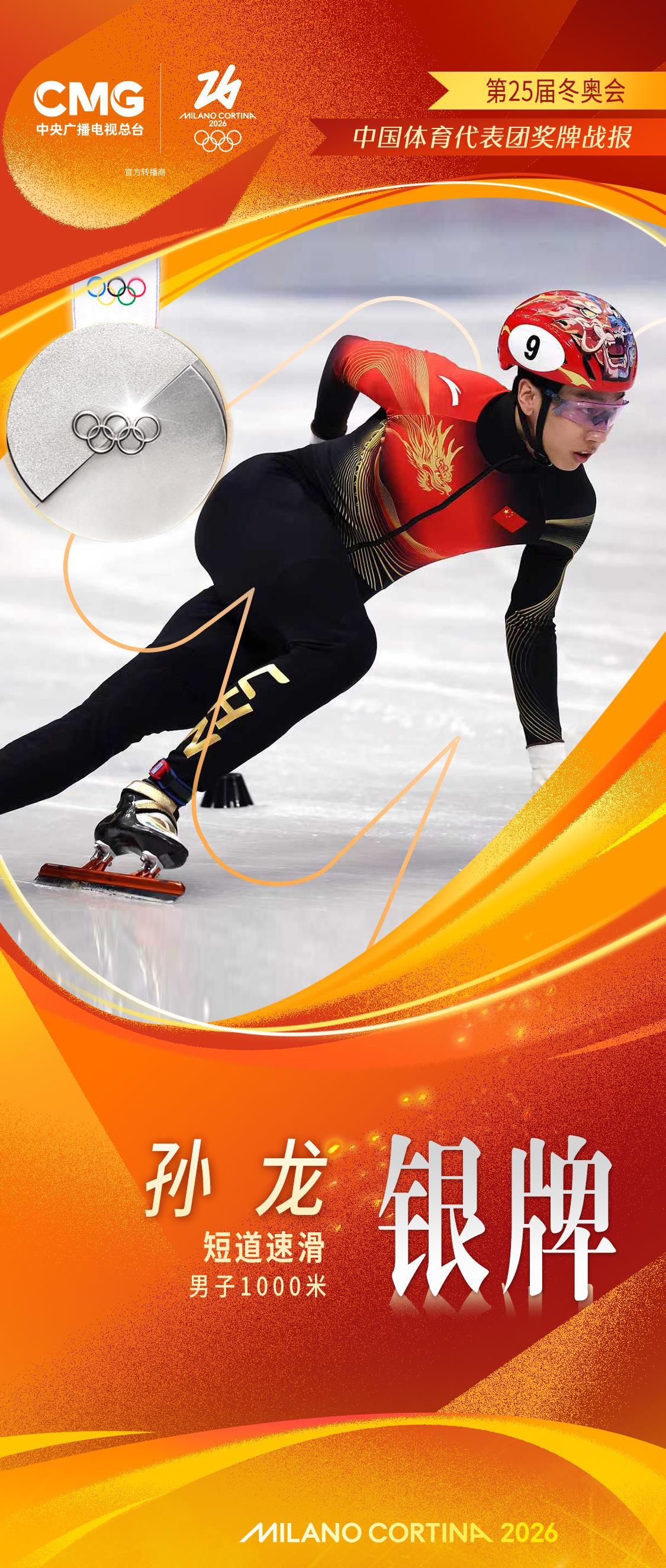 北京时间2月13日,米兰-科尔蒂纳冬奥会短道速滑男子1000米A组决赛,中国选手孙龙以1分24秒565的成绩获得亚军。