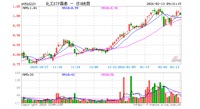 2月13日,化工ETF国泰(516220)开盘跌0.59%,报1.015元。化工ETF国泰(516220)重仓股方面,万华化学开盘跌1.12%,盐湖股份跌1.06%,藏格矿业跌1.14%,天赐材料跌1.10%,巨化股份跌0.03%,恒力石化跌1.26%,华鲁恒升跌1.21%,宝丰能源跌1.46%,云天化跌0.98%,金发科技跌0.16%。