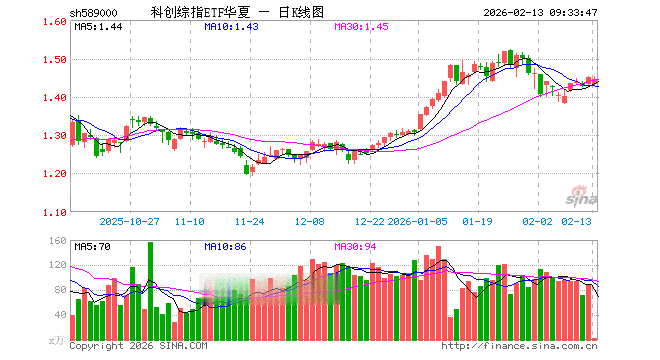 2月13日,科创综指ETF华夏(589000)开盘跌1.24%,报1.433元。科创综指ETF华夏(589000)重仓股方面,寒武纪开盘跌1.12%,海光信息跌0.89%,中芯国际跌0.30%,中微公司跌0.63%,金山办公跌0.96%,澜起科技跌0.78%,百利天恒跌1.21%,联影医疗涨0.01%,影石创新涨0.59%,拓荆科技跌0.34%。