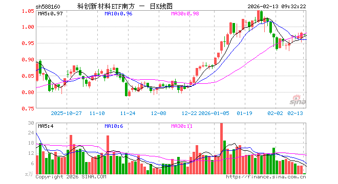 2月13日,科创新材料ETF南方(588160)开盘跌0.41%,报0.976元。科创新材料ETF南方(588160)重仓股方面,沪硅产业开盘跌0.15%,西部超导跌0.68%,安集科技跌1.37%,天岳先进跌0.35%,凯赛生物涨0.41%,容百科技跌0.97%,厦钨新能跌1.18%,斯瑞新材跌0.86%,嘉元科技涨0.30%,天奈科技跌0.47%。