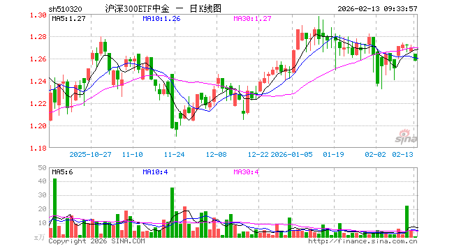 2月13日,沪深300ETF中金(510320)开盘跌0.47%,报1.264元。沪深300ETF中金(510320)重仓股方面,宁德时代开盘跌0.07%,贵州茅台涨0.00%,中国平安跌0.59%,中际旭创跌0.66%,紫金矿业跌3.75%,招商银行跌0.10%,新易盛跌1.02%,美的集团跌0.36%,兴业银行涨0.05%,长江电力涨0.04%。
