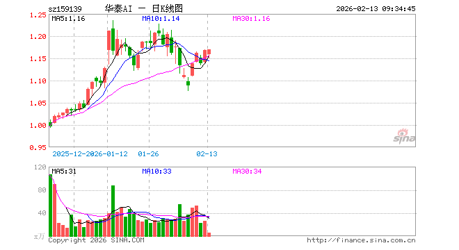 2月13日,科创创业人工智能ETF华泰柏瑞(159139)开盘跌0.86%,报1.158元。科创创业人工智能ETF华泰柏瑞(159139)重仓股方面,新易盛开盘跌1.02%,中际旭创跌0.66%,澜起科技跌0.78%,寒武纪跌1.12%,金山办公跌0.96%,芯原股份跌2.78%,昆仑万维跌3.19%,协创数据跌1.06%,北京君正跌0.79%。
