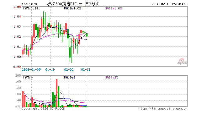 2月13日,沪深300指增ETF(562070)开盘涨0.00%,报1.023元。沪深300指增ETF(562070)重仓股方面,宁德时代开盘跌0.07%,贵州茅台涨0.00%,中国平安跌0.59%,紫金矿业跌3.75%,招商银行跌0.10%,兴业银行涨0.05%,中际旭创跌0.66%,新易盛跌1.02%,寒武纪跌1.12%,药明康德跌0.01%。