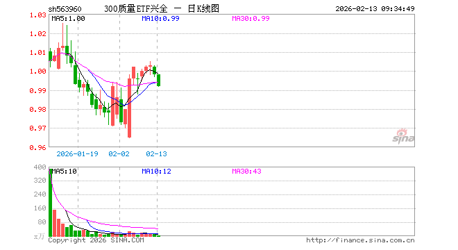 300质量ETF兴全(563960)业绩比较基准为沪深300质量指数收益率,管理人为兴证全球基金管理有限公司,基金经理为田大伟,成立(2025-12-05)以来回报为-0.08%,近一个月回报为-1.63%。
