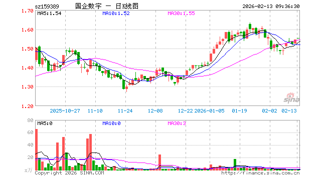 2月13日,数字经济ETF嘉实(159389)开盘涨0.52%,报1.553元。数字经济ETF嘉实(159389)重仓股方面,中芯国际开盘跌0.30%,海光信息跌0.89%,北方华创涨1.00%,中科曙光跌1.22%,生益科技跌1.23%,中微公司跌0.63%,海康威视跌0.28%,中国电信涨0.00%,中国移动涨0.06%,浪潮信息跌1.95%。