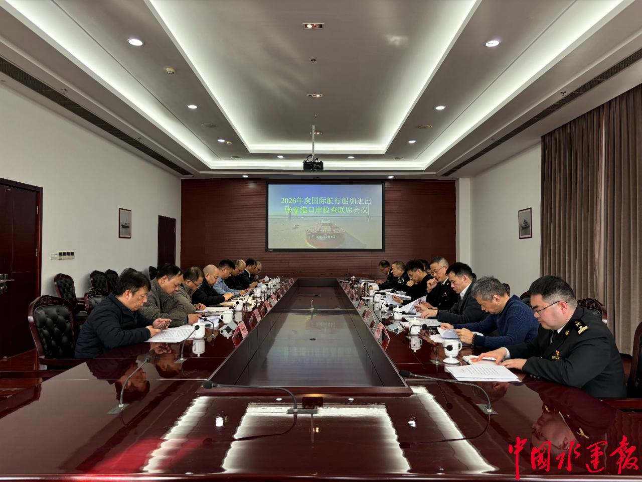 2月9日,2026年度国际航行船舶进出张家港口岸检查联席会议在张家港海事局召开,张家港市商务局(口岸办)、港区办、各口岸查验单位、引航站以及部分码头和代理单位相关领导共计19人参加会议。
