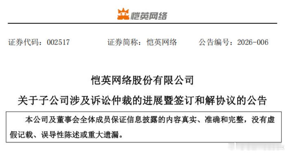 【恺英“传奇纠纷”大结局:1.99亿元和解金“买断”4.8亿连带债务,正向增利2亿元网页链接】2月11日,恺英网络发布公告称,全资子公司上海恺英与株式会社传奇IP签订了《关于子公司涉及诉讼仲裁的进展暨签订和解协议(以下简称和解协议)》,以1.99亿元和解金一次性解决了4.8亿元连带债务。