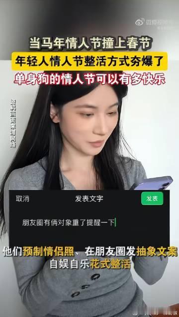 年轻人情人节整活方式夯爆了 告别俗套秀恩爱,年轻人专注自我浪漫,花式整活趣味十足