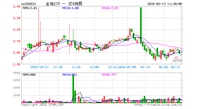 2月13日,截止午间收盘,金融地产ETF国投瑞银(159933)跌0.33%,报2.979元,成交额5.67万元。金融地产ETF国投瑞银(159933)重仓股方面,中国平安截止午盘跌1.49%,招商银行跌0.41%,兴业银行跌0.27%,东方财富涨0.04%,中信证券跌0.07%,工商银行跌0.28%,国泰海通跌0.85%,农业银行跌1.51%,交通银行跌0.74%,浦发银行跌0.30%。