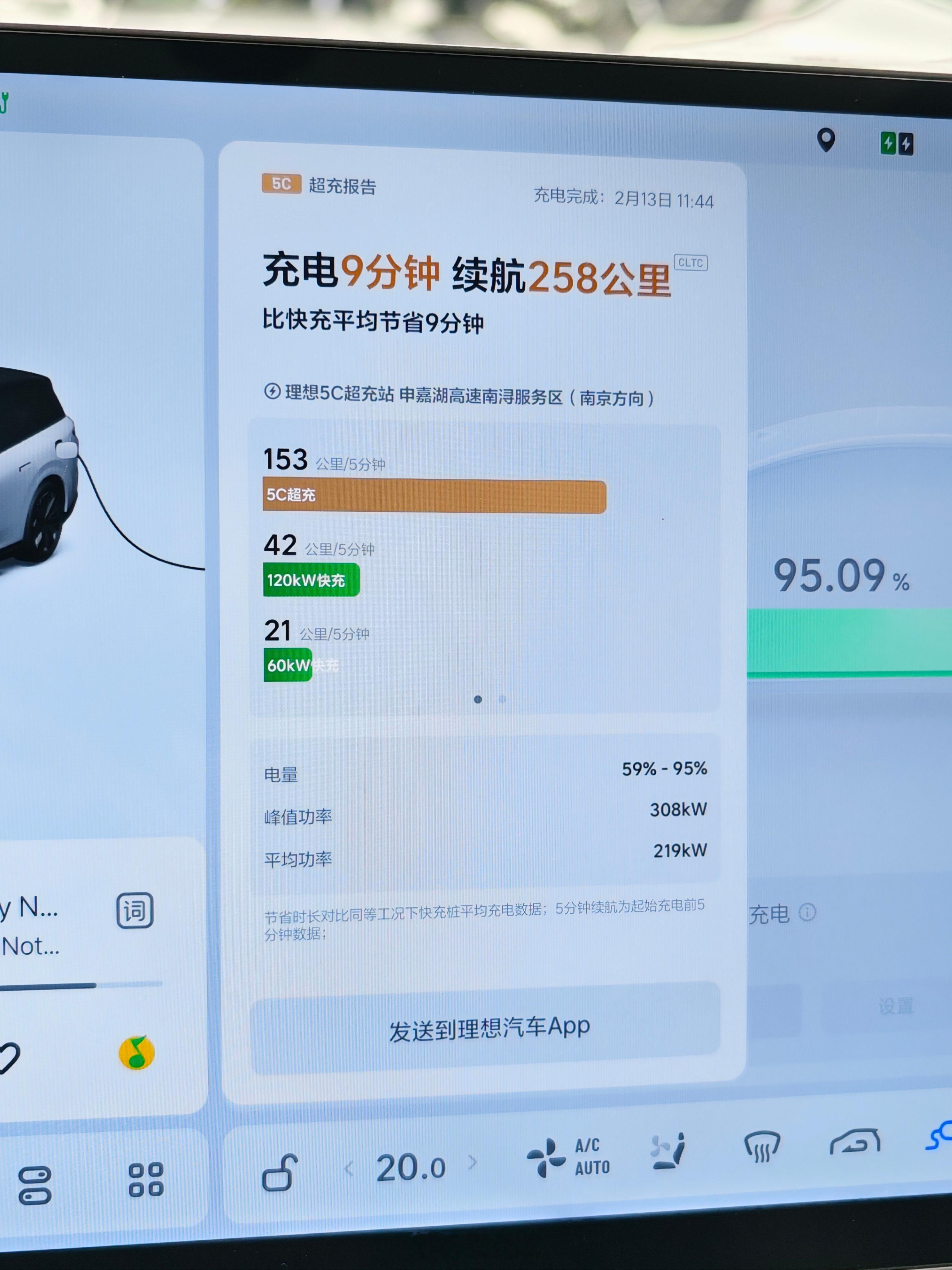 刚才到了第一个途经点,申嘉湖高速南浔服务区理想超充站,所有桩全满。不过理想从上海派来的负责值守的小哥让说很快就可以充上了。只要理想车主在导航上设置了理想超充站作为途经点,他们就会知道,尽可能给你留位。等我们上好厕所出来,果然有空位了,充了9分钟走人,有自家的超充站就是香。接下来的路程更通畅,春运的高速也没那么堵哈理想汽车理想i8