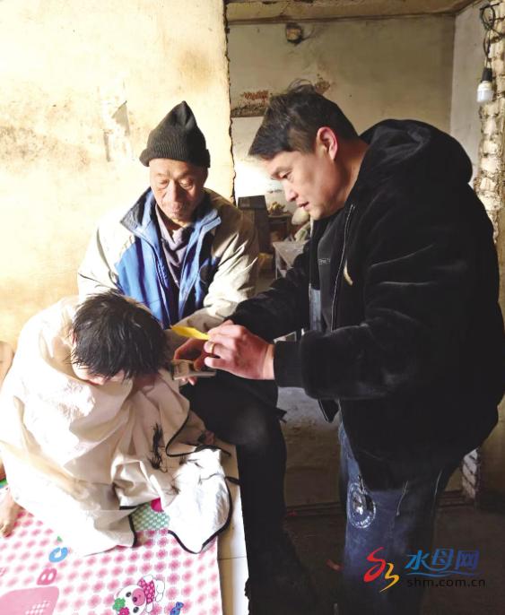 1月22日,莱阳市冯格庄街道沈家屯村村民沈雪飞和冯格庄街道残联的工作人员任代昌再次来到冯格庄西小埠村,为低保户老于的家人理发。