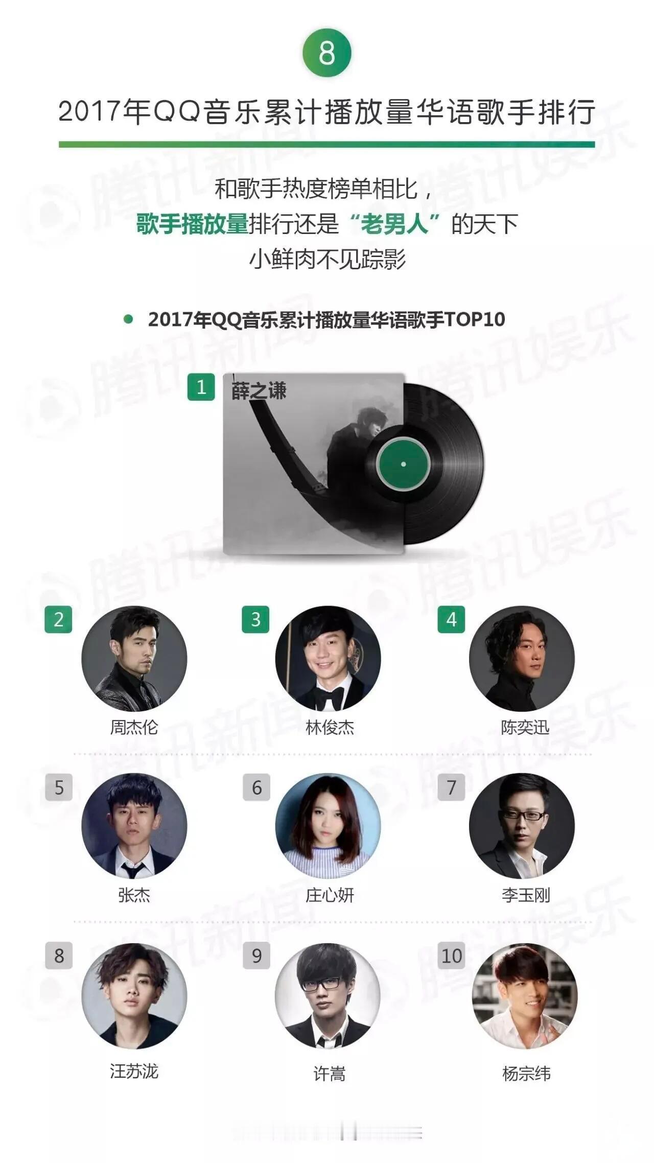 2017年QQ音乐累计播放量华语歌手排行榜