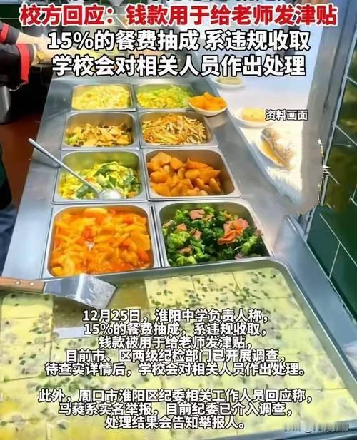【食堂承包背后的猫腻】 最近,河南一所中学食堂承包商实名举报校领导吃回扣的事,在网上闹得沸沸扬扬。承包商爆料,两年时间里,校方以各种名义拿走了三百多万,官方调查后核实的金额更是达到了410多万。这笔钱,大多被用来发教师补助、搞学校维修,还有一部分被管理人员私吞,甚至有少量钱留在校长个人账户里。事情曝光后,当地迅速处理,十几名责任人被追责,涉事校长被撤职,相关违规资金也要求全部退还给学生。这件事撕开了学校食堂外包背后的遮羞布,让大家看清了里面藏着的猫腻。 很多人不明白,承包商愿意给这么多回扣,图什么?道理很简单,羊毛出在羊身上。承包商不是做慈善的,给出去的回扣,肯定要从学生的餐费里找补回来。最直接的办法,就是在食材上动手脚:买便宜的劣质食材,减少菜品分量,降低饭菜质量。本该给孩子吃的新鲜肉蛋菜,换成了低价次品;本该足量的饭菜,偷偷克扣分量。家长交的每一分餐费,本应用在孩子的饮食上,结果一部分变成了领导的回扣,一部分被承包商压缩成本,最后落到孩子餐盘里的,大打折扣。这吃的哪里是回扣,分明是家长的血汗钱,是孩子们的身体健康。 更让人痛心的是,这些问题,学校领导和老师不是不知道。食堂的饭菜好不好、够不够,每天都看在眼里、吃在嘴里。可他们选择睁一只眼闭一只眼,甚至主动默许、纵容这种行为。在利益面前,教书育人的初心抛在了脑后,守护学生健康的责任丢在了一边。食堂本该是校园里最干净、最安心的地方,却成了少数人牟利的工具,寒了家长的心,也辜负了学生的信任。 好在,这样的乱象已经开始被整治。重庆就给全国做了个好榜样,全面清退学校食堂承包商,严禁托管、承包,让食堂回归学校自营,坚持零利润运营。全市几千所中小学食堂收回经营权,大宗食材统一采购,账目全程公开,还引入家长监督、实时监控,每一分钱都明明白白用在学生身上。专项整治以来,查处了几百起校园餐领域的腐败问题,彻底斩断了利益链条。这充分说明,学校食堂不是不能管好,而是愿不愿意真管、敢不敢动真格。 学生的舌尖安全,是最基本的民生,也是最不能触碰的底线。校园反腐,就要从这些看似细小、却关乎千家万户的事抓起。叫停食堂外包牟利,推行学校自营、账目公开、全程监管,把餐费的使用权还给学校,把监督权交给家长,把健康和安心还给孩子。只有让食堂运营在阳光下,让每一笔开支都经得起检验,才能杜绝回扣、克扣等乱象,让家长不再揪心,让孩子吃得放心。这件事也提醒所有教育工作者,教育的初心不能忘,学生的利益大于天,任何伸向学生饭碗的黑手,都必将受到严惩。