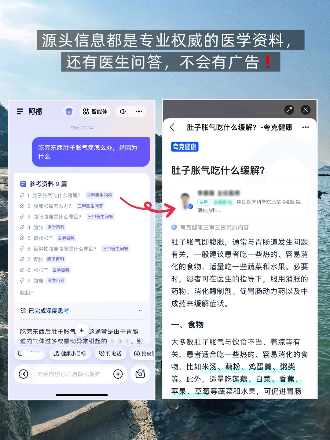 阿福不是那种什么都懂一点的杂学家,阿福背后的大模型是500多名名医一起训练出来的,你仔细观察它的回答,都引用医学指南等威资料,语料库非常干净~[吧唧R]
