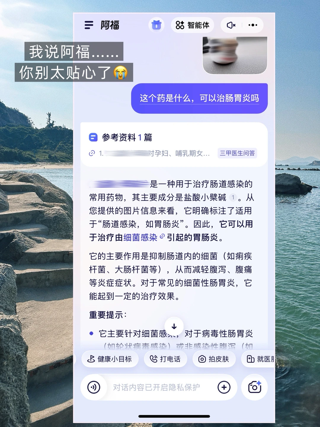 阿福是我们的健康参谋,不是要取代医生哦!遇到小毛病或者拿不准的时候,问它是为了心里有底,避免瞎折腾或者耽误事。当然它能直接调出医保码挂号支付,一条龙服务超顺滑✨