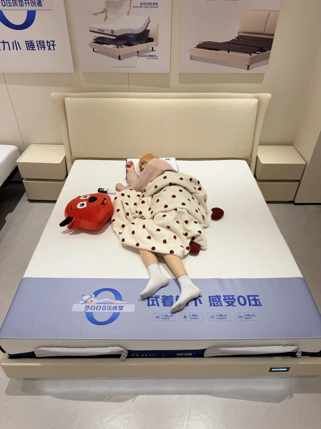 刷到梦百合线下能试睡体验,立刻拉着他直奔门店,没想到一躺上去居然直接睡着了,尴了个大尬😅,但也足以见得这张梦百合三体联名智能床的魔力。