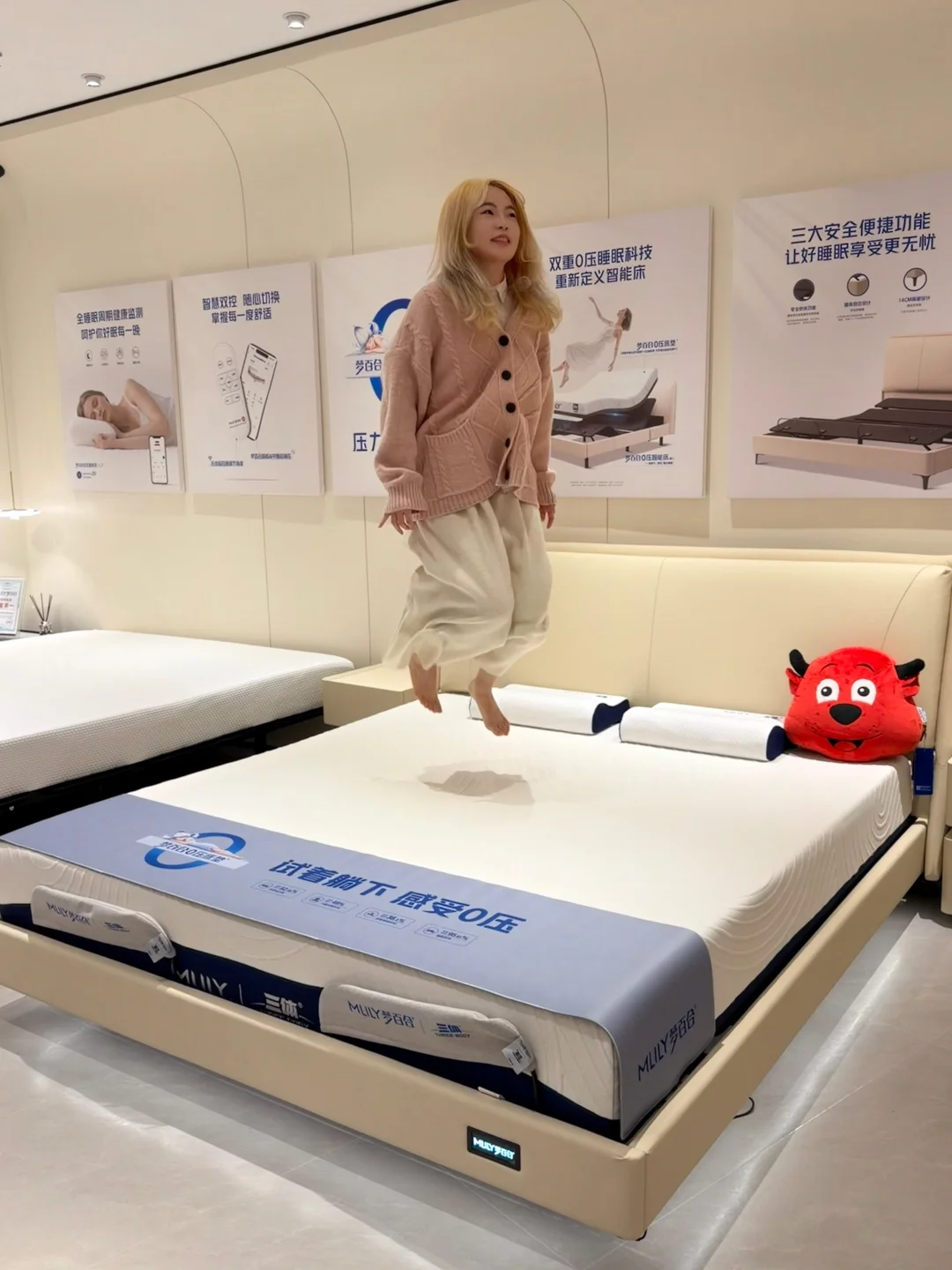 门店体验“柔性唤醒”太戳心了,床会轻轻把人托起,比闹钟⏰温柔一百倍,像是在云层里自然苏醒。而且升降时的声音🔊特别小,操控时根本听不到声音,面料亲肤,里面的石墨烯内套还抗菌,我这种敏感肌睡起来也格外安心,现场就脑补出把它放在家里安心睡觉的幸福画面了。