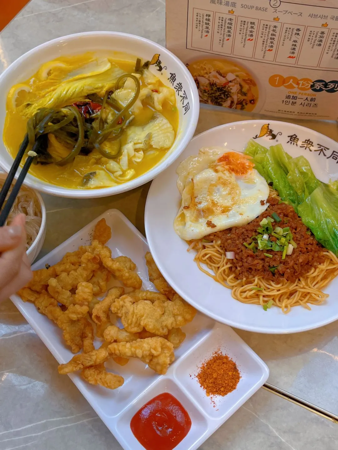 来香港过年必吃的地道家常味给你们挖到啦! 全港9间分店的「魚众不同」,口味稳定不出错。 🍜 炸酱肉沫面+蛋 肉酱给得超足,咸香浓郁超入味,面条筋道弹牙 加颗蛋香气直接翻倍,寓意锦上添花、圆圆满满 🐟 柠檬酸菜鱼(鲈鱼) 进店必点招牌!鱼肉超顺滑 柠檬清新搭配酸菜爽脆,汤底开胃又解腻 年年有余,新年财运直接拉满🧨 🍖 小酥肉 外酥里嫩,趁热吃香气十足 不柴不腻,不管当小吃还是配菜都很绝 性价比在线,分量实在,能吃到这么地道的家常菜真的很惊喜~ 新年吃好喝好,万事顺意,福气满满!✨