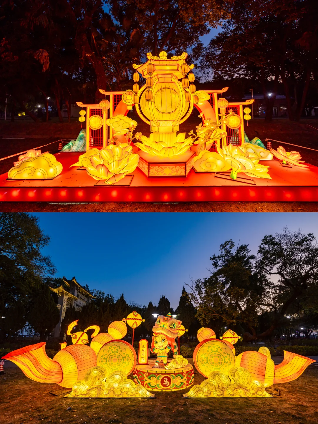 古榕挂满红灯笼,「马年大吉」萌趣马儿+醒狮灯组超应景