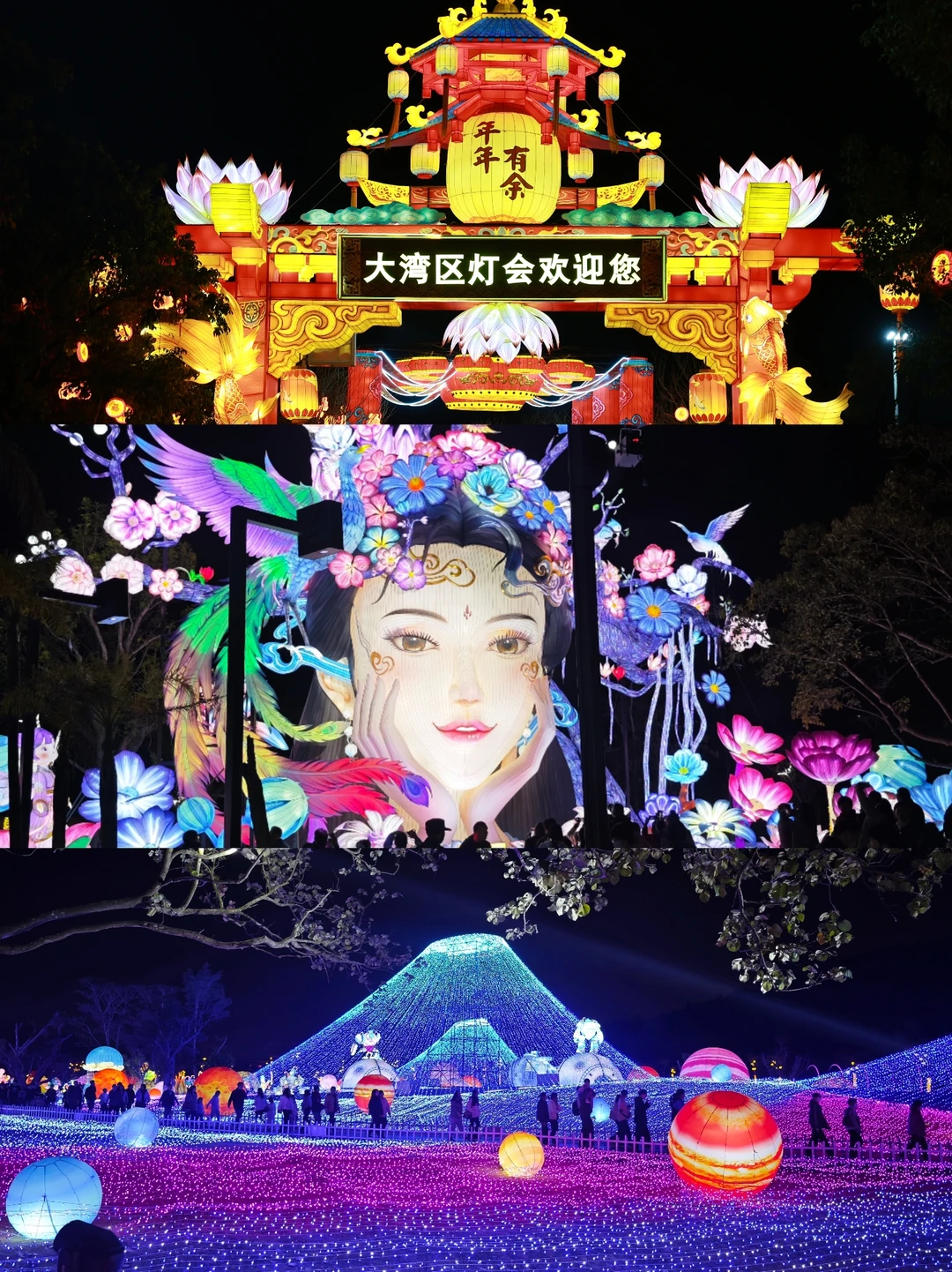 重头戏来了!从酒店出发就能直达2026粤港澳大湾区灯会,超方便。夜幕降临,整个园区被梦幻的灯光装置点亮,科技感十足。我们跟着推荐的路线打卡,娃一路惊呼“太漂亮了”,玩得不亦乐乎。