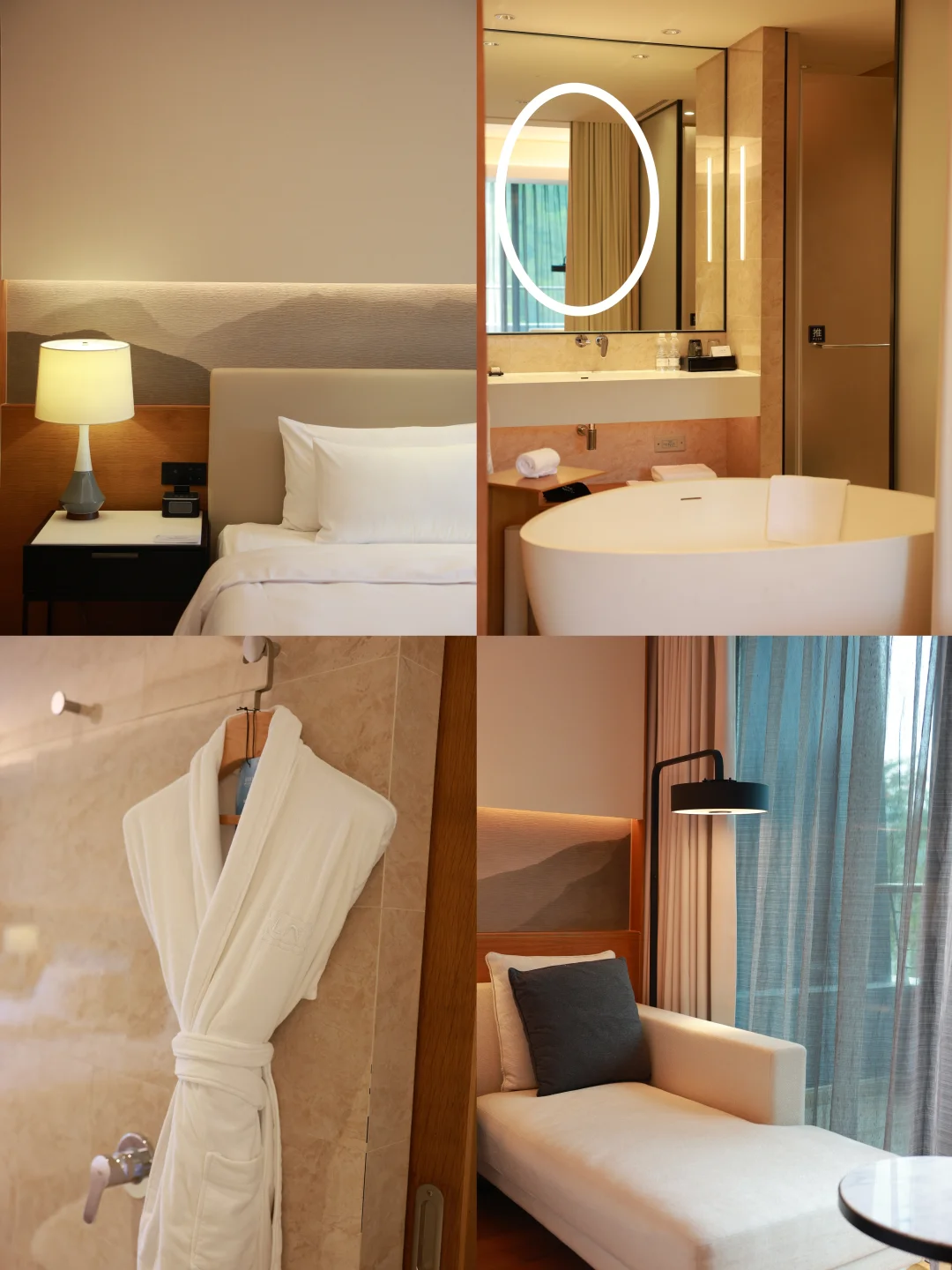 我们订的是双床房,白天阳光洒进来,房间通透又明亮,细节处都透着干净和舒适。到了晚上,暖黄的灯光亮起,氛围感瞬间拉满,娃在房间里疯跑都舍不得出门。