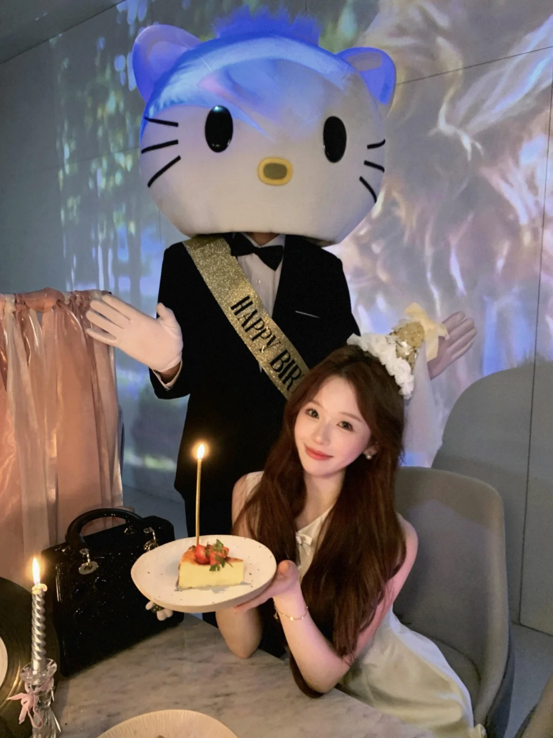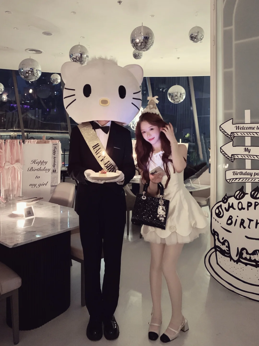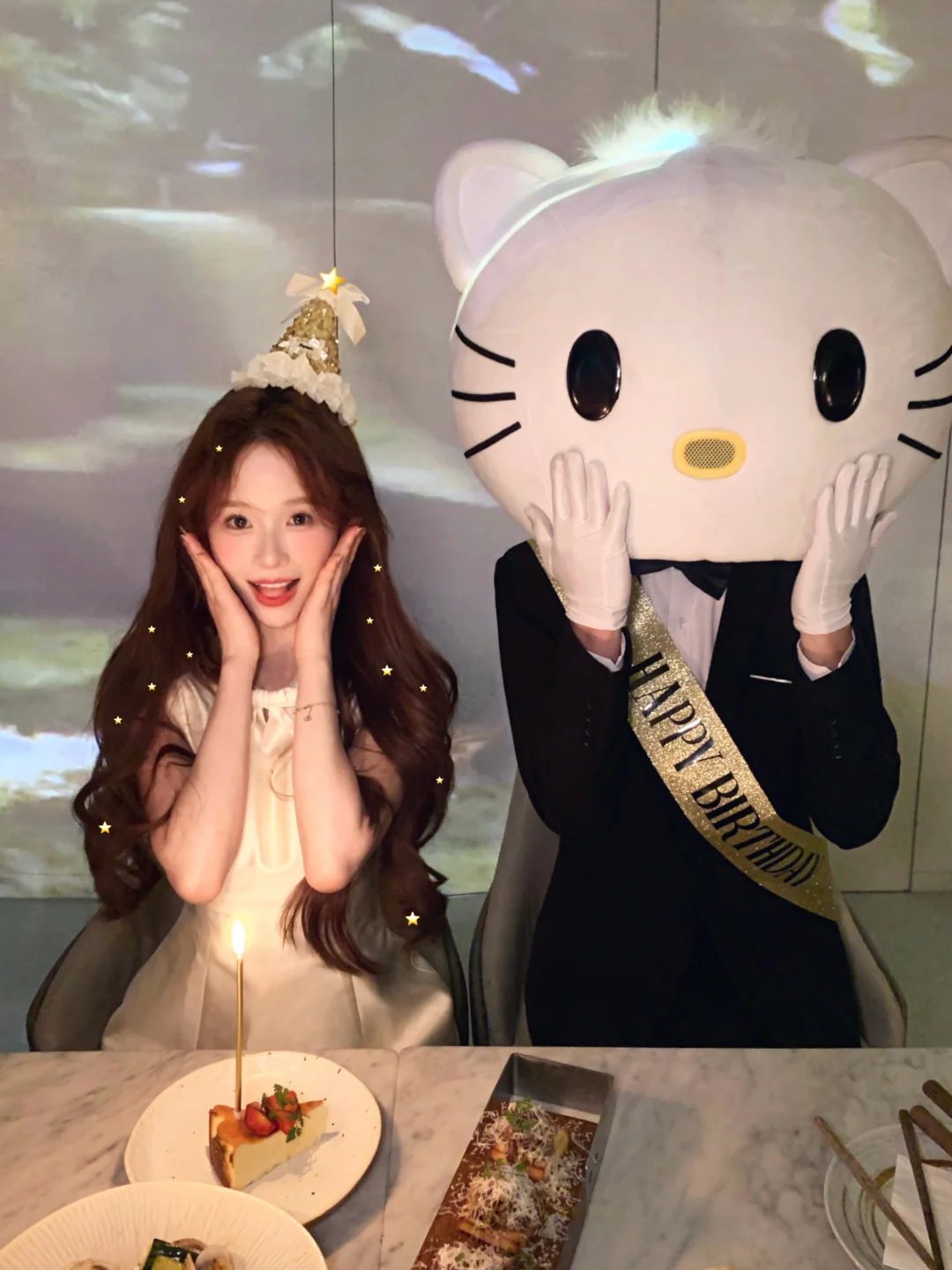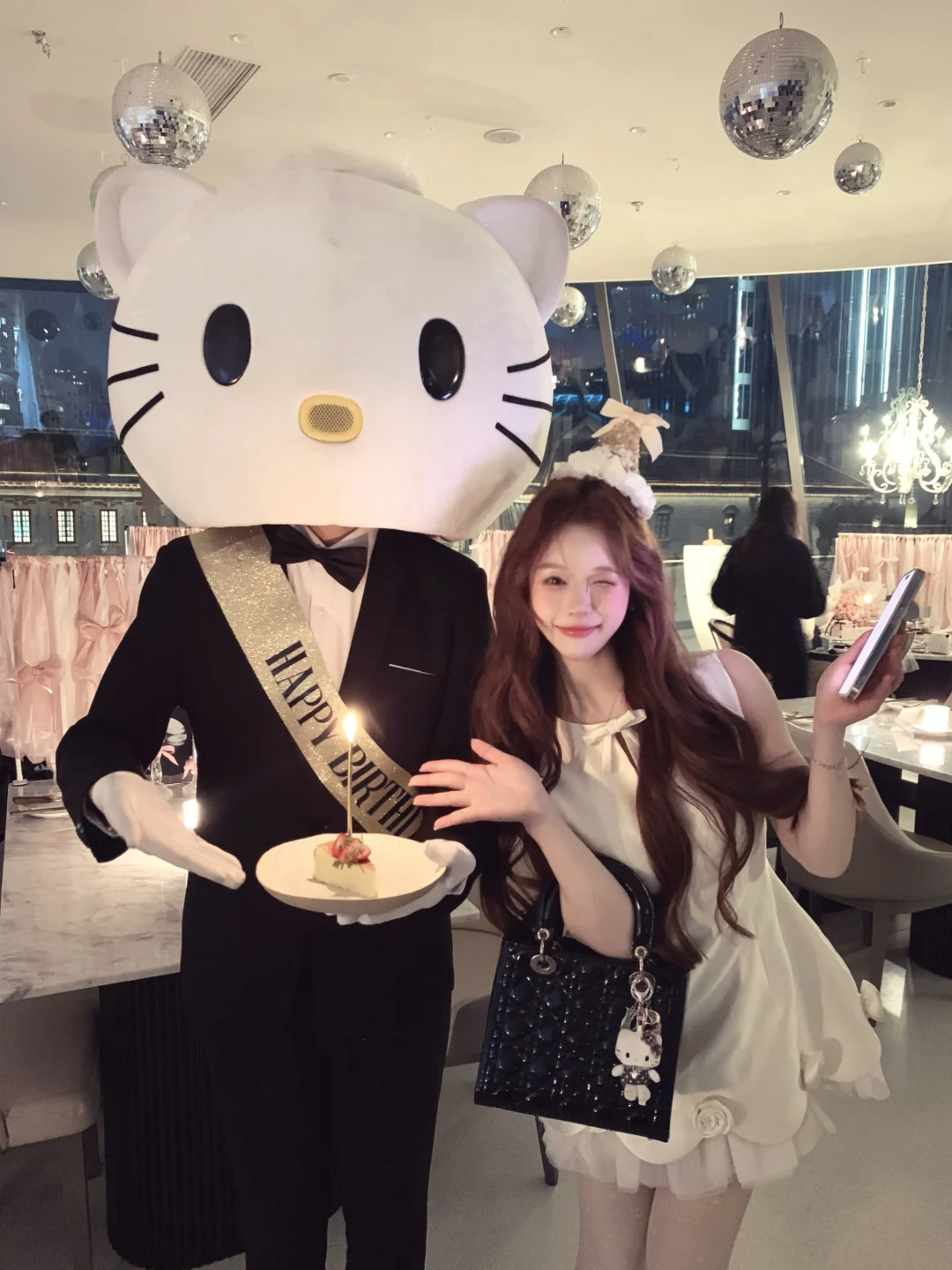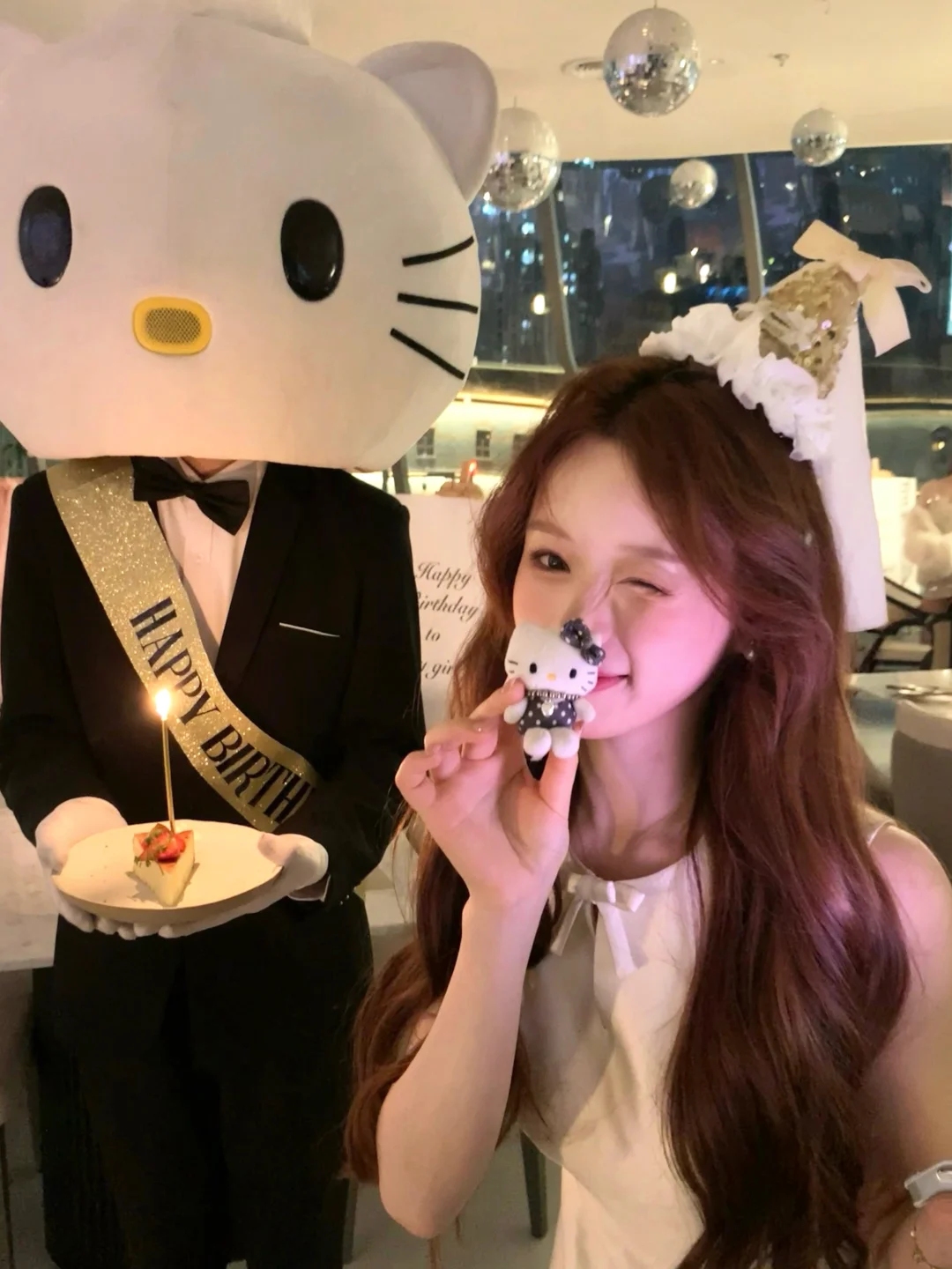 Kitty女友过生日的话 丹尼尔男友在也很正常啦哈哈~ 我真是好会找上海的漂亮餐厅 专门为这个丹尼尔来的 吃个小蛋糕就过一次生日🎂 感觉每个女生桌上都有hello Kitty耶