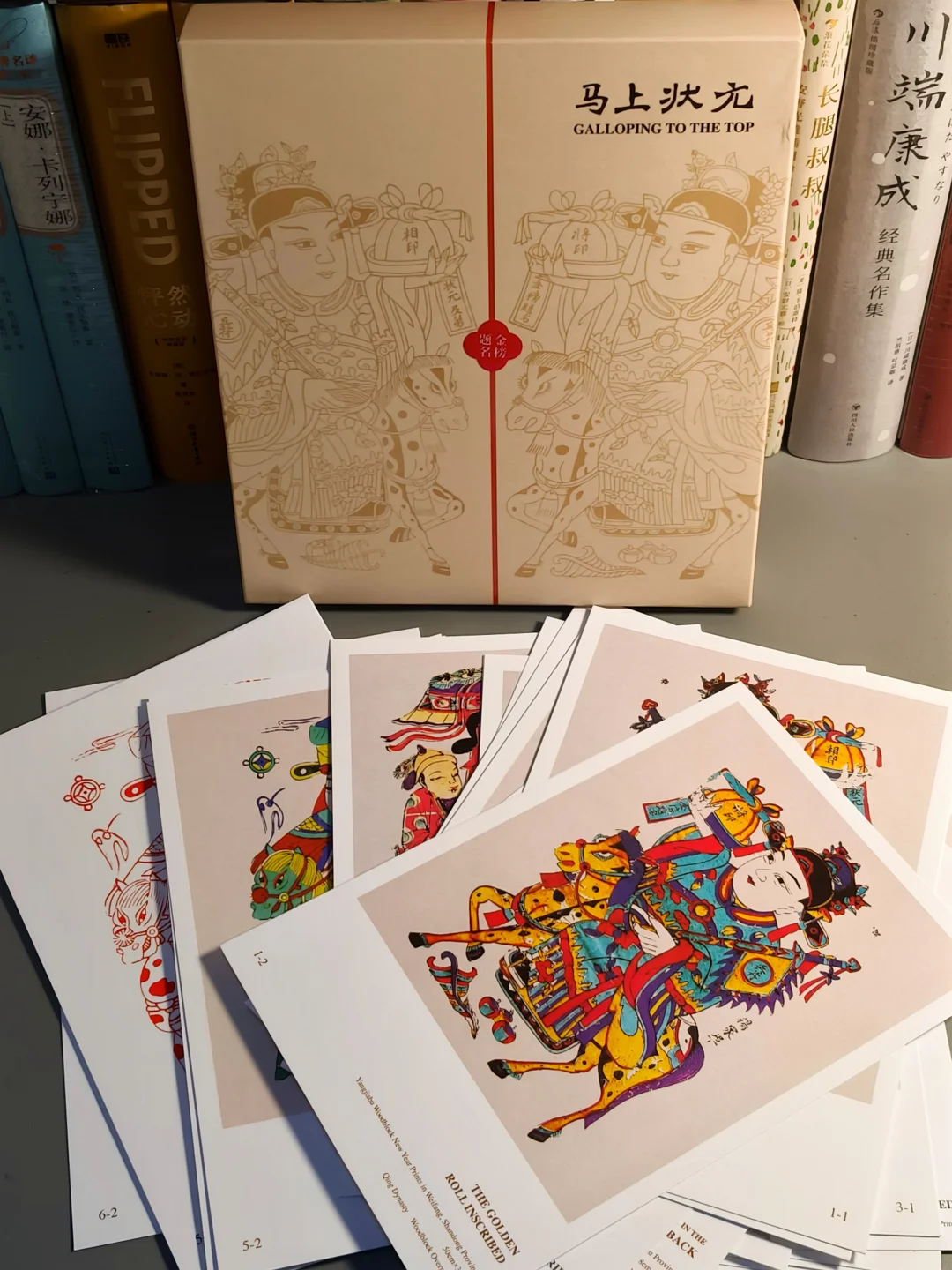 “一举登科,蟾宫稳步,桂香满袖”是古人的金榜题名。作为新年贺礼,本套明信片结合中国传统文化底蕴,与时代要素相结合,面向世界,展示中国独'有的年俗画韵味。