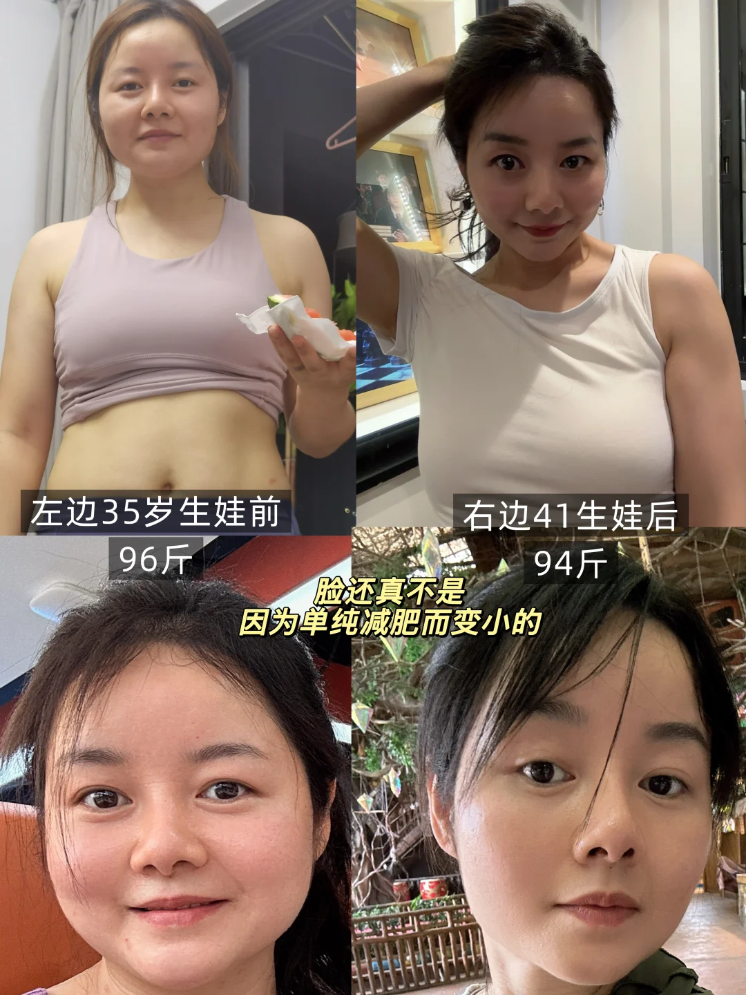 有人说我的变化来自于减肥,我不完全认同, 图三有我差不多体重的对比照,那时候还没生娃, 并且比现在要年轻六岁! ! 我属于天生的大肉脸,一直嫌弃自己的脸太肉,不高级,上镜不好看! 没想到41岁还能得到一个轮廓清晰的脸,嘿嘿 方法都放在图片里面了,抄作业吧姐妹们! 虽然是41岁,也要做漂亮的41岁[害羞R]