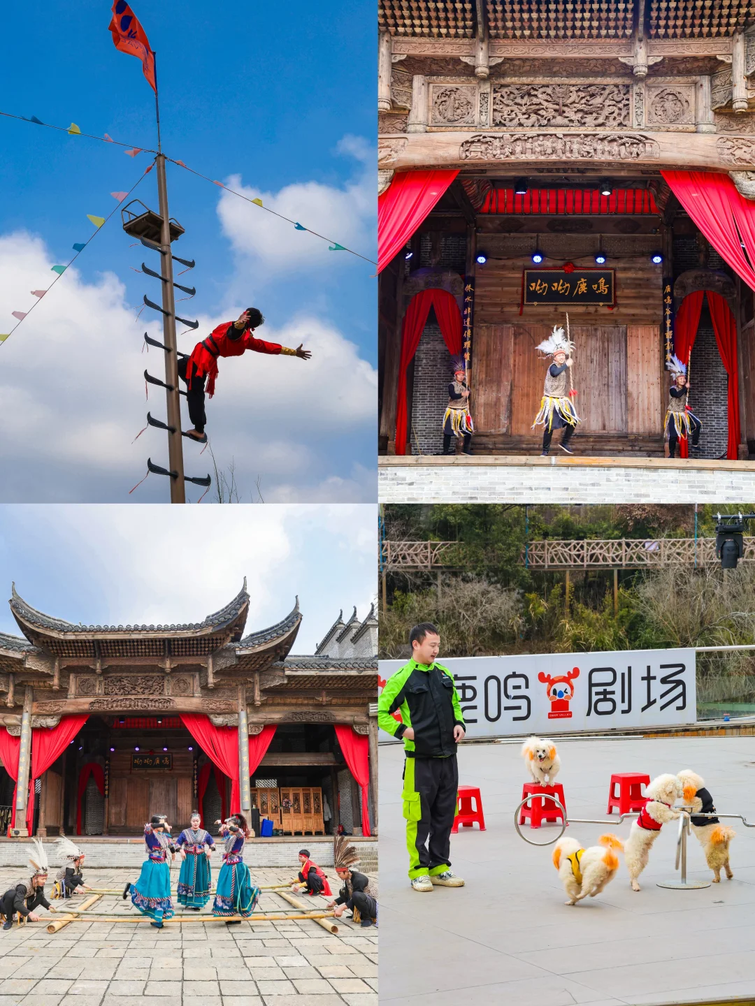 景区全天还有各种表演🎭,飞鸟剧场、鹿鸣剧场、古戏台、野人部落以及鹿鸣湖的表演很多,可以提前关注景区演绎表进行选择