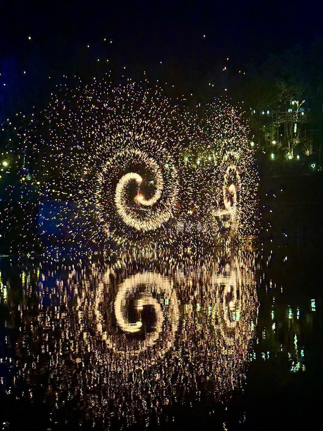 因为酒店在景区里面,晚上就去先看了火鞭、火棍、火立方、水上火壶、打铁花等传统非遗表演,好震撼…