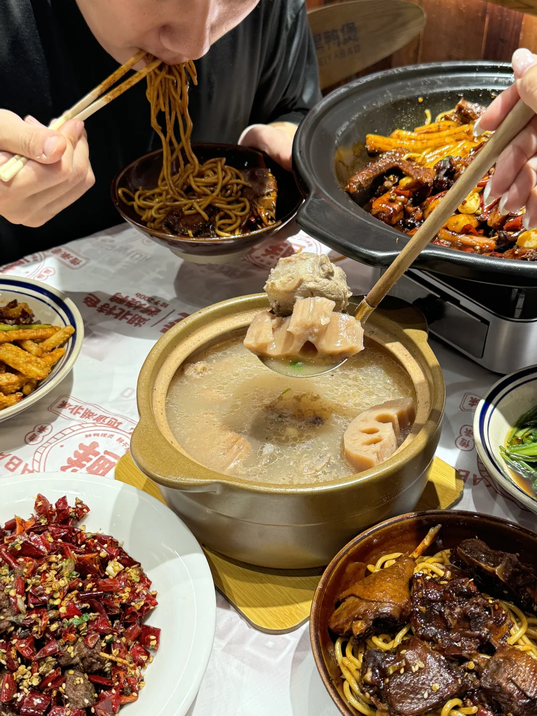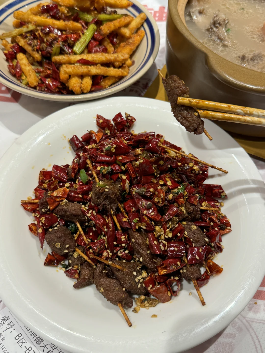 广东辣妹辣哥前来应战!!斗胆点了微微辣🌶️ 果然辣的够劲!!全程斯哈斯哈但停不下来! 鸭肉紧实入味!一定要➕搭配热干面或者筋喜粉!干煸藕条!牙签牛肉!🤤真的juju好吃!!