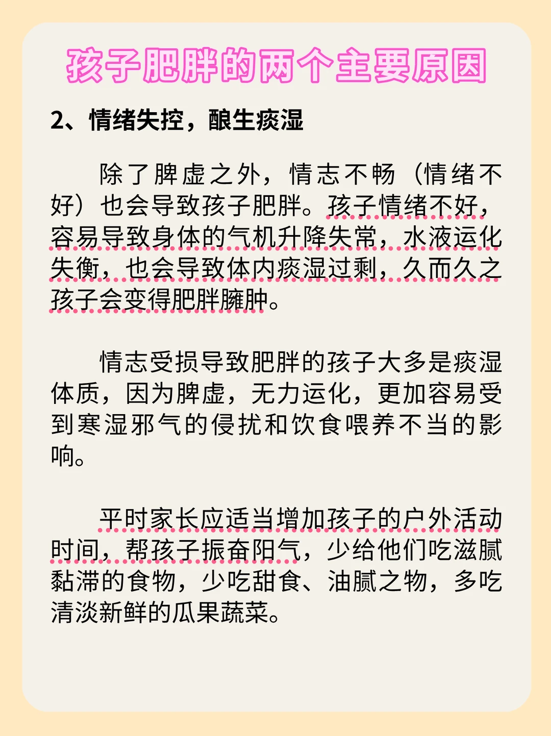 孩子情绪不好,容易导致身体的气机升降失常,水液运化失衡,也会导致体内痰湿过剩,久而久之孩子会变得肥胖臃肿。