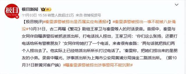 紧接其后,具备权威性的官方媒体纷纷进入相关领域,针对该事件展开了指名道姓的批评行为,所发表的文章用严厉措辞明确表明,关于“秦雯袭警被捞出”这种情况到底是不是真实的,应该给出清晰确切的通报,而这一事件绝对不应该被当成闲聊的八卦话题,进而在舆论形成的浪潮中被完全淹没掉的。