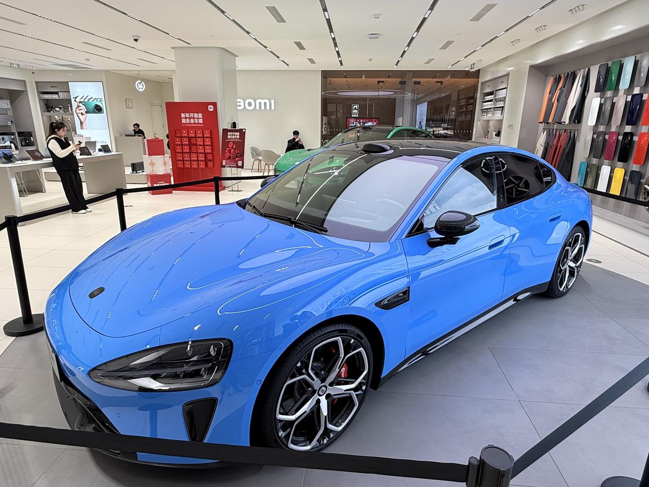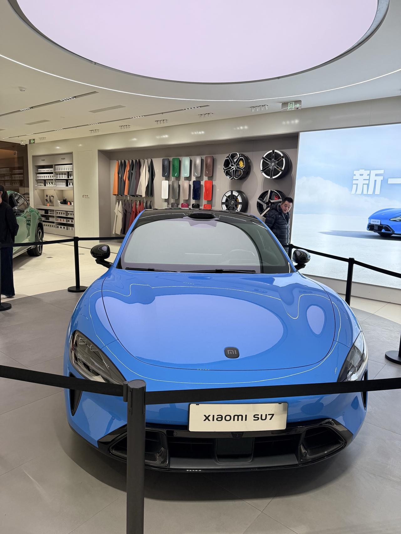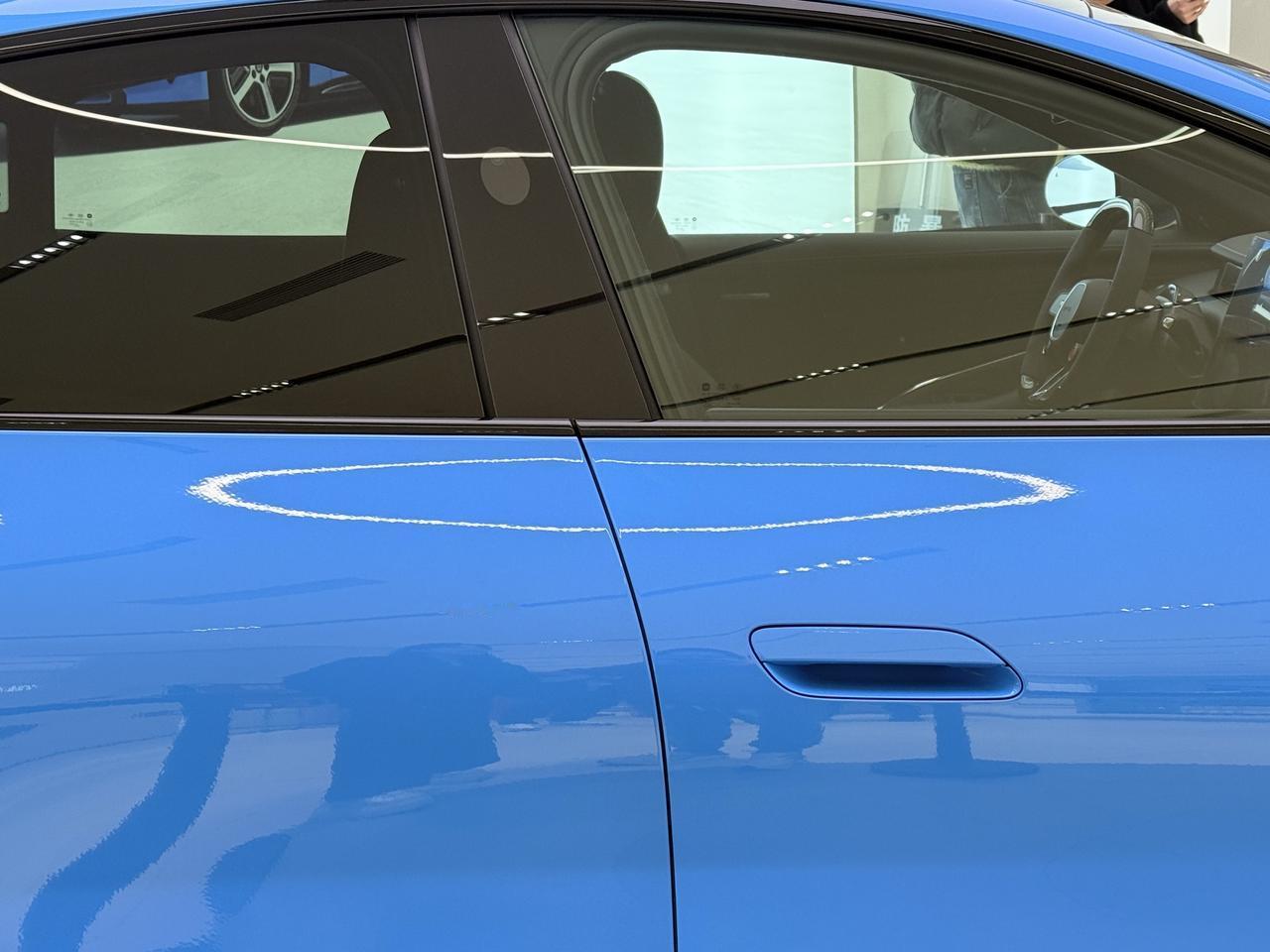 实车的颜色比官方渲染图更有层次感,光影反射看起来更通透。 细节上的变化,首先是新国标门把手,可以机械开启了。车标和尾标全部可选黑化。天幕貌似是两个分区的可调节变色天幕。前备箱升级到了YU7同款的电动结构,开启按钮位于左侧摄像头位置。
