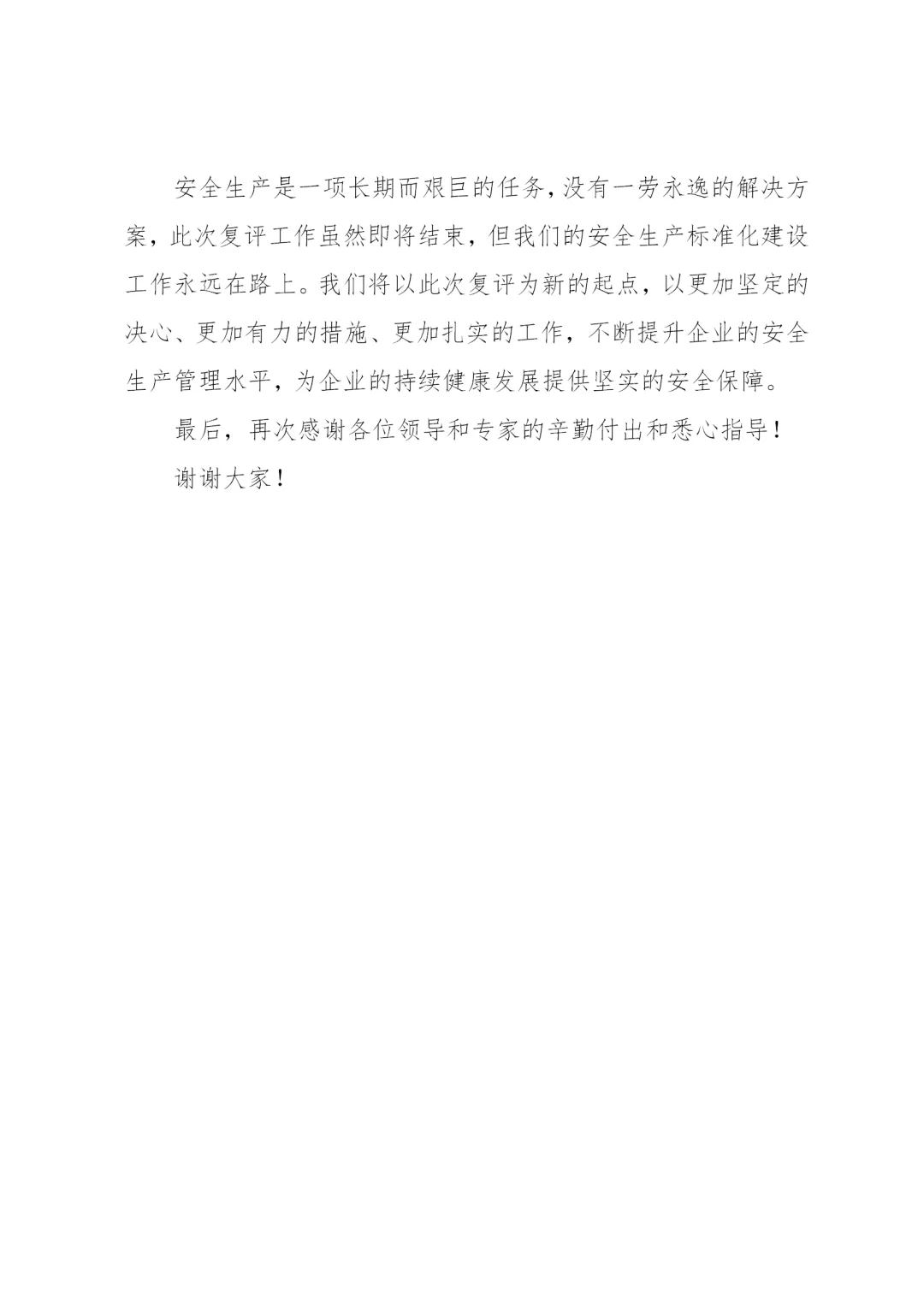 体制内:安全生产标准化工作末次会发言材料