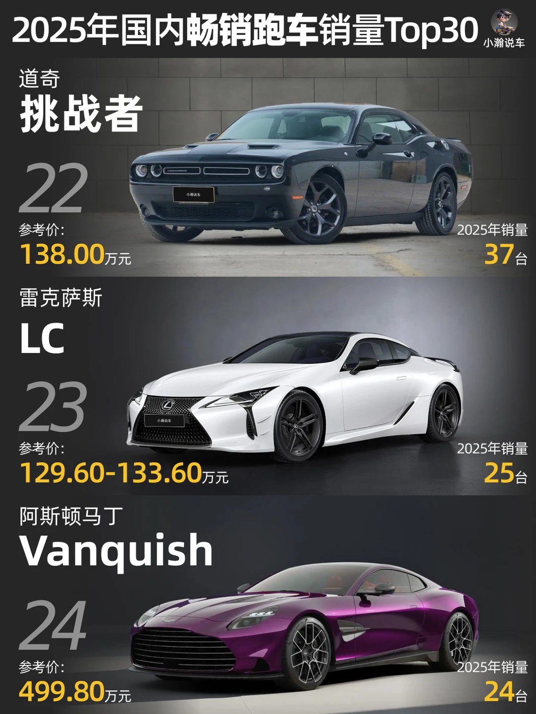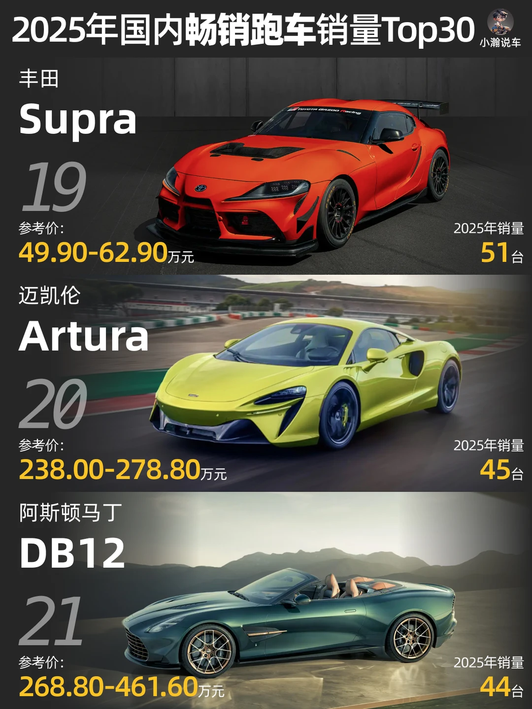 如果说当前国内汽车市场还有什么赛道是国产品牌尚未“大规模侵入”的,跑车肯定算一个! 🚗刚刚过去的25年,国内跑车销量Top30大部分依然是底蕴十足的海外超豪华品牌!国产品牌仅比亚迪仰望以及“混血”莲花跑车上榜。来看看哪辆是你的梦中情车?