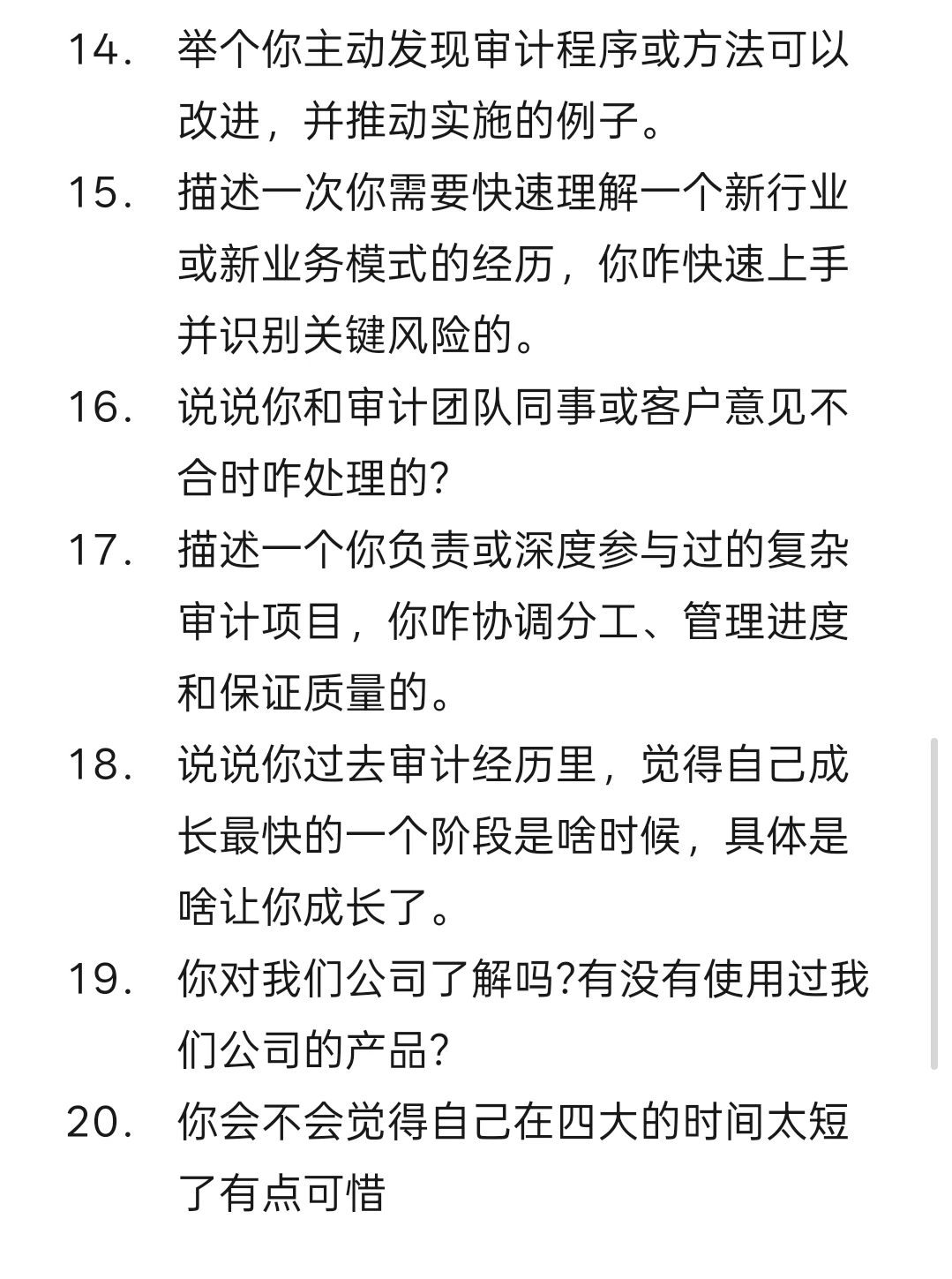 18. 说说你过去审计经历里,觉得自己成长最快的一个阶段是啥时候,具体是啥让你成长了。
