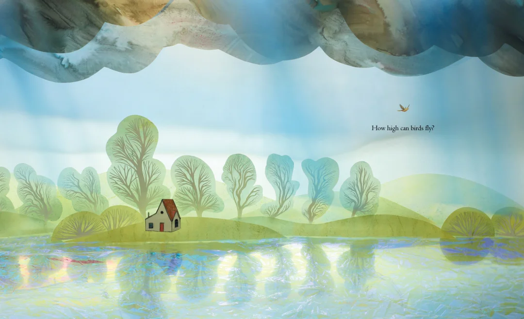 加拿大纸艺立体模型艺术家Elly Mackay标志性的绝美剪纸摄影作品,为这场冒险增添了无尽诗意——她以独特的纸艺立体模型技法,打造出光影流转的画面,柔和的色调、通透的质感,将云朵的轻盈、天空的辽阔,以及自然的奇妙,展现得淋漓尽致,每一页都像一幅会发光的画,让人忍不住驻足凝视。