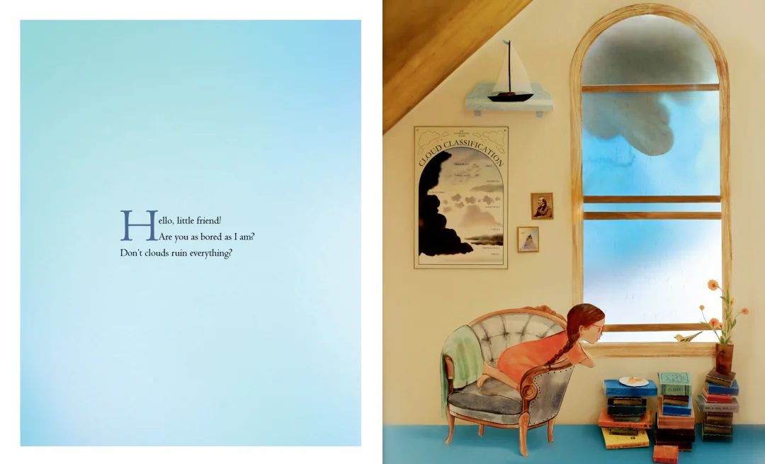 在软绵绵的云朵之间,小女孩的好奇心被彻底点燃,一连串天真又深刻的问题,随着风轻轻飘荡:云朵为什么能浮在天空?它们如何承载雨水?消失之后,它们会去往哪里?其他星球上,也有这样温柔的云朵吗?云朵有记忆吗?它们见过像她一样,对世界充满好奇的小女孩吗?