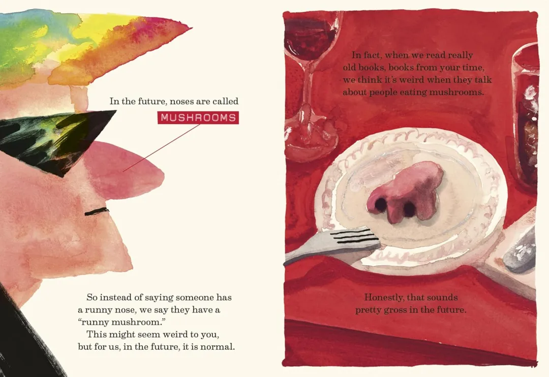 这是一本 “来自未来” 的书 —— 它不是回顾过去,而是带你提前窥见明天的世界。翻开书页,你会遇见未来的新奇词汇、古怪的社交习俗、超乎想象的绚丽色彩,以及各种天马行空的生活场景。它不提供标准答案,而是用充满惊喜的画面与文字,邀请孩子一起想象:未来,究竟会是什么模样?